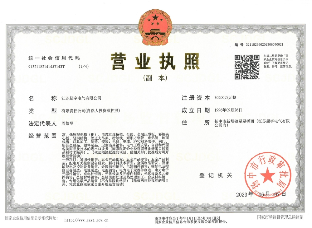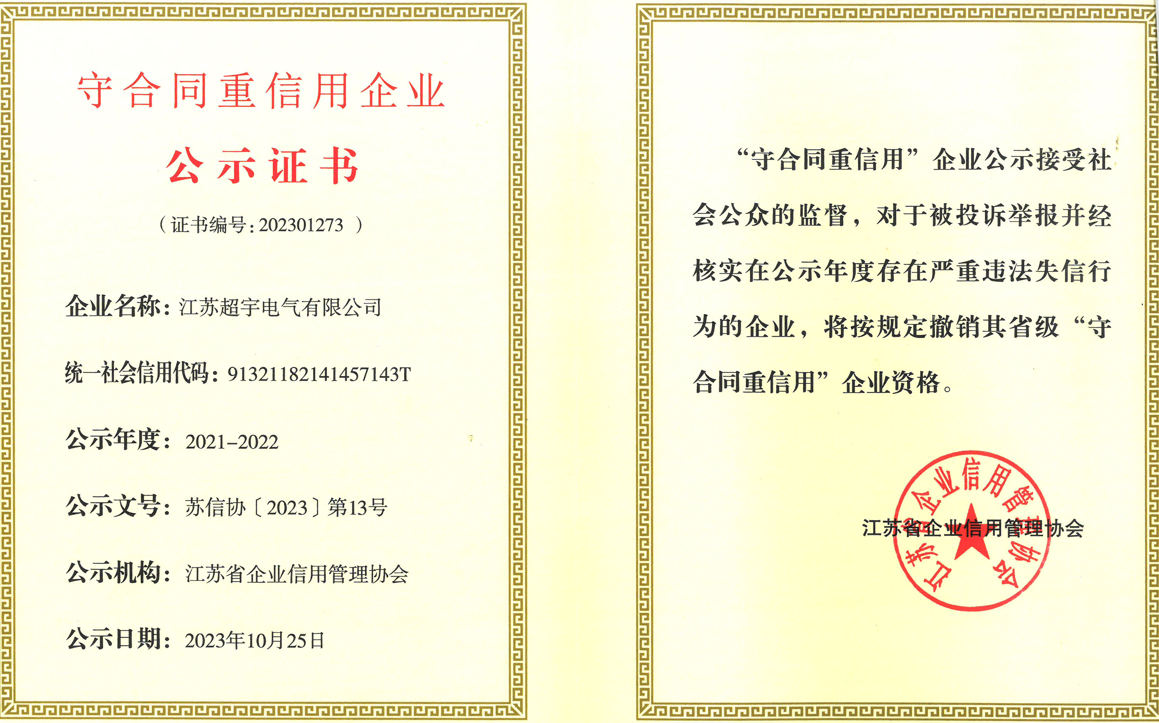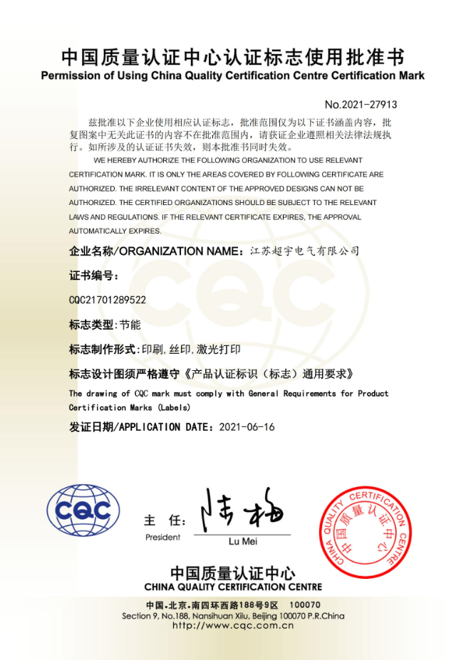 江蘇超宇電氣有限公司地處繁榮富饒的長江金三角,座落在聞名遐邇的生態(tài)示范區水上花園城市--揚中。公司成立于一九九六年,經過二十多年的發(fā)展進步,目前已形成專業化生產制造規(guī)模。 公司現有注冊資金3.0... ... [詳細>>]